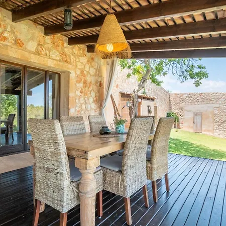 プライベ-トなプ-ルと台所付きのRustica En Porto Colom-Es Sequerヴィラは客室を提供しています. このヴィラにはテラスがあります.